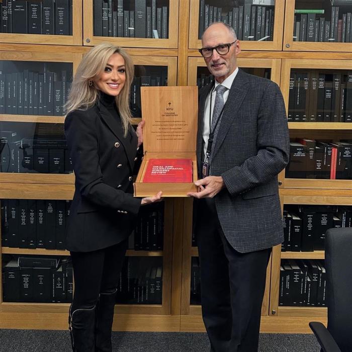 تم تكريمي من قبل جامعة نيويورك حيال إصداري وتأليفي لكتاب أكاديمي تمت إضافته للمنهج التدريبي في جامعة نيويورك في تخصص جراحة الوجه والكفين