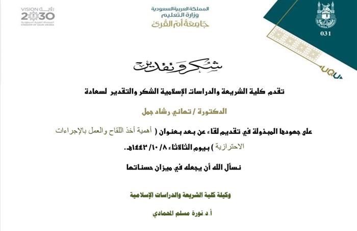 الدكتورة هالة بنت سعيد العمودي حملة "اهتمامي أساس صحتي وجمالي"، والتي كانت بتنظيم لجنة التثقيف الصحي بفرع المركز الطبي الجامعي بمقر الطالبات، وبإشراف مساعدة مدير عام المركز الطبي الجامعي للشؤون الفنية الدكتورة تهاني بنت رشاد الجمل، وبمشاركة وحدة مكافحة السمنة والأمراض المزمنة بوزارة الصحة، بالتعاون مع إدارة العلاقات العامة والإعلام، وذلك خلال الفترة 2 - 4 صفر للعام 1439هـ، أمام مقر المركز الطبي الجامعي، وعلى مدار ثلاثة أيام.